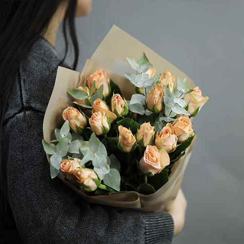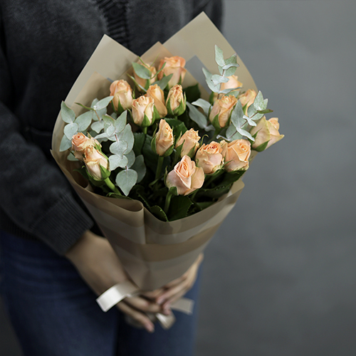 Букет "Абрикос" из 17 роз кения с эвкалиптом (40 см)